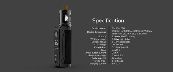 Innokin Coolfire Z80 Box Mod Kit developed by Innokin, The box mod received an ergonomic zinc alloy body, painted in four color combinations. The back side was rounded under the...