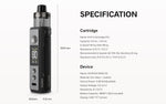 Drag X2 Kit is powered by single external 18650 battery with 80w max and Type-C charging. It is designed with 5ml capacity, easy side filling system, and top airflow intake....