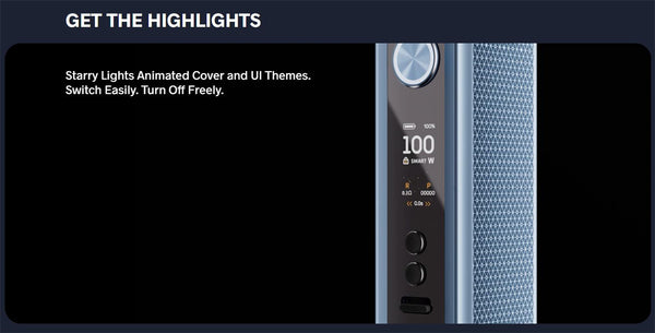 Create a unique atmosphere with different starlight animations and UI themes. Not just another box mod. It's a show maker.