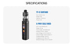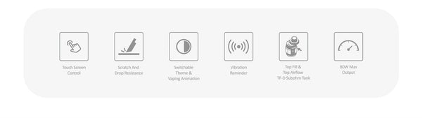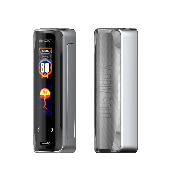 SMOK X-PRIV Solo Box Mod is not only easy to carry around but also offers a non-stop power supply. Protected by the magnetic battery cap is one 18650 battery which enables X-PRIV Solo Mod to produce 80W max output. The latest touchscreen technology makes the TFT screen large and user-friendly. All the vaping data you need, including the puff count and resistance of the coil installed are displayed in great detail. You can also combine SMOK X-PRIV Mod with other tanks for a different vaping experience.
