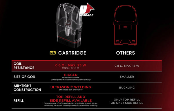 Here comes the CALIBURN G3,It is the first CALIBURN among the G series that supports 0.6ohm , max 25 W output made for RDL Freebase users and loose MTL Nic Salt users. The integrat - ed coil cartridge brings the features of leakage-proof and mess-free to the next level. You can experience a greater vaping with a flavor boost , constant stability and a throat hit