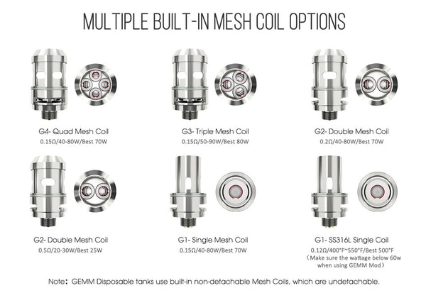 Capacity: 5ml (G1 Mesh Coil Standard Edition); 4ml (G2/G3/G4 Mesh Coil Standard Edition)