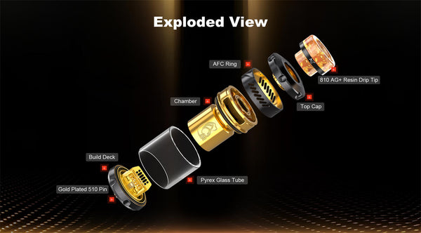 Hellvape Dead Rabbit 3 RTA features a diameter of 25mm. Finished with a postless deck for dual coil configuration, incorporating a 3.5ml vape juice capacity, you can also choose a bubble glass with its 5.5ml. It matches a flawless flavor and massive vapor when it comes to its top-to-bottom airflow, the top airflow is provided by two side slots and directly guides air down through its honeycomb. Opening the top cap, it supports the top filling system to resupply the e-juice.