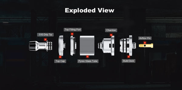 1. 22.5mm diameter single coil RTA (Accommodating Minimum 30 GA Wire)