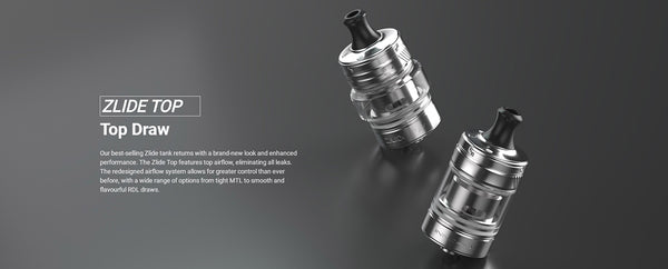 The best-selling Zlide tank is back with a brand new look and improved performance. The Zlide Top features superior airflow, eliminating all leaks. The redesigned airflow system allows the user to have better control than ever before, with a wide range of options from tight MTL to RDL. Crafted from durable stainless steel, the Zlide Top Tank delivers a strong and impervious chassis against light falls and drops. Accommodating up to 3mL of eJuice or nicotine salts, the Zlide Top Tank is top filled, revealing a single fill port behind a sliding top. In addition, the Innokin Zlide Top Tank utilizes coils from the Innokin Z Coil Series to output delicious clouds of vapor when adjusted with the single top airflow control ring.