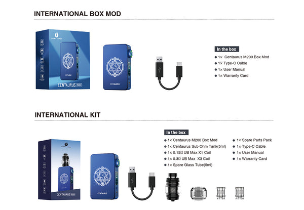 The Centaurus M200 innovates the way you look at mods . The 200W dual 18650 powered box mod with a 2A Type-c incorporates an innovative 3-in-1 jog dial control with...