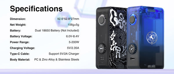 The Lost Vape Centaurus P200 Box Mod offers advanced technology and a sleek design. With dual 18650 batteries (not included) and 200W power, this mod provides a reliable and powerful...