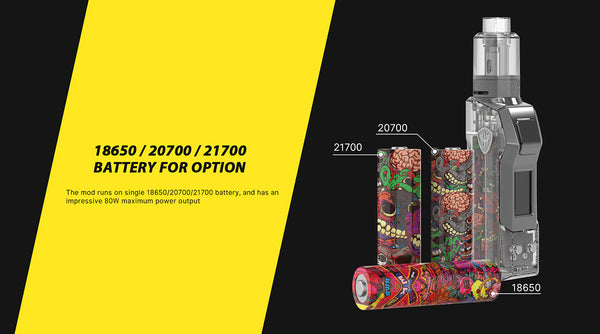 Powerful 80W with single external 21700/18650 cell