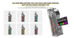 Rincoe Jellybox Mini 80W Kit which consists of a Jellybox Mini 80W Mod and a Jellytank Atomizer. Rincoe Jellybox Mini 80W Kit made of Zinc alloy& high end PC.Jellybox 80W Mod is powered by single 21700/18650/20700 battery bwith MAX 80W Output. Jellytank Atomizer can holds capacity of 4.8ml and comes with a mehsed 0.3ohm coil inside.Offer 6 LED lights and shine,if you don't use it will be able to close.