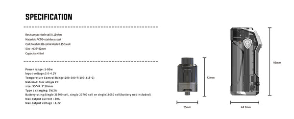 Coil: Mesh 0.3ohm coil/Mesh 0.15ohm coil