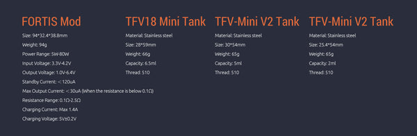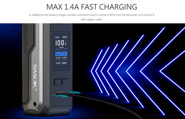 The Smok Fortis Kit, evolving from the tried-and-tested Thallo 8 Thallo S Kit and upgrading them with a 510 thread TFV18 Mini tank, the elegant leather on the top of his body, the ergonomic design makes it easy to grip and non-slip. Powered By a single external 18650 / 21700 battery then serves your vaping with adjustable power up to 80w. Built-in smart chipset, features 0.001s instant firing speed, straightforward operation data on the 0.96inch TFT color screen, with operation buttons, you can adjust the wattage and function or more. The 6.5ml TFV18 Mini Tank comes with two mesh coils(one pre-installed), with an adjustable bottom airflow control valve, TFV18 Mini Tank will definitely bring an all-new vaping experience! The top filling system is easy to use and effectively leak-proof.