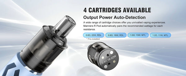 The Manners R Pod Cartridge is designed especially for the Vapefly Manners R Pod System Kit.