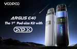 Argus E40 Kit is designed with 1800mAh battery, auto/button draw. can hold 4.5ml vape juice for long-time vaping. Adopting PnP X Atomizer Tech, it is compatible with PnP X Coils, provides denser cloud & purer taste, 100ml long coil life without leakage & coil burning. With the stepless airflow adjustment, you can adjust vaping from MTL to DTL smoothly. It adopts a side-filling system and can accommodate both freebase and nicotine salt e-juice. VOOPOO E40 is equipped with a sizeable LED screen that shows the resistance of the pods, vaping time, and other data clearly. VOOPOO Argus E40 is also compatible with Argus PnP X Cartridge with PnP X 0.3ohm/0.45ohm/0.6ohm.
