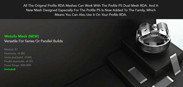 Wotofo Profile PS RDA, the collaboration of Wotofo and Mrjustright1, is a dual mesh RDA with 810 Resin Drip Tip. Wotofo Profile PS Dual Mesh RDA features adjustable side airflow...